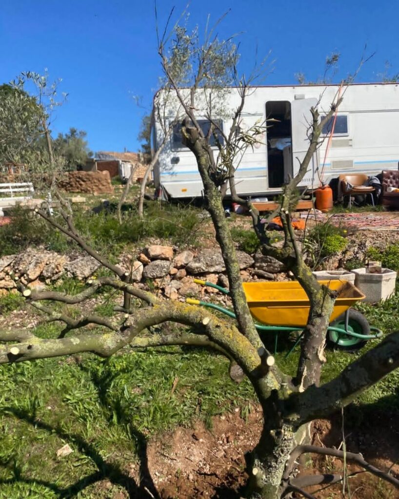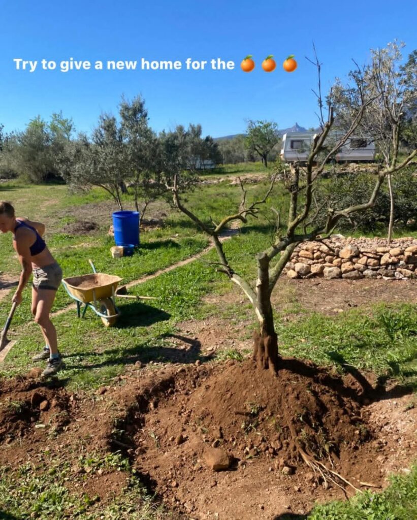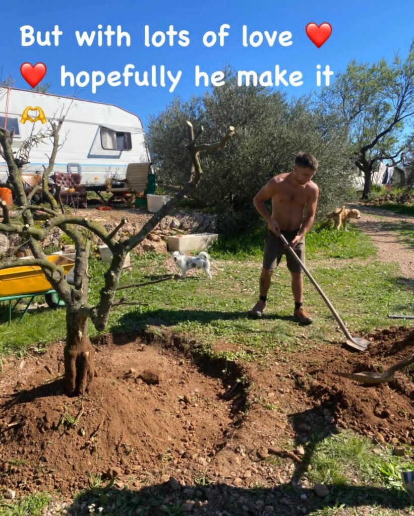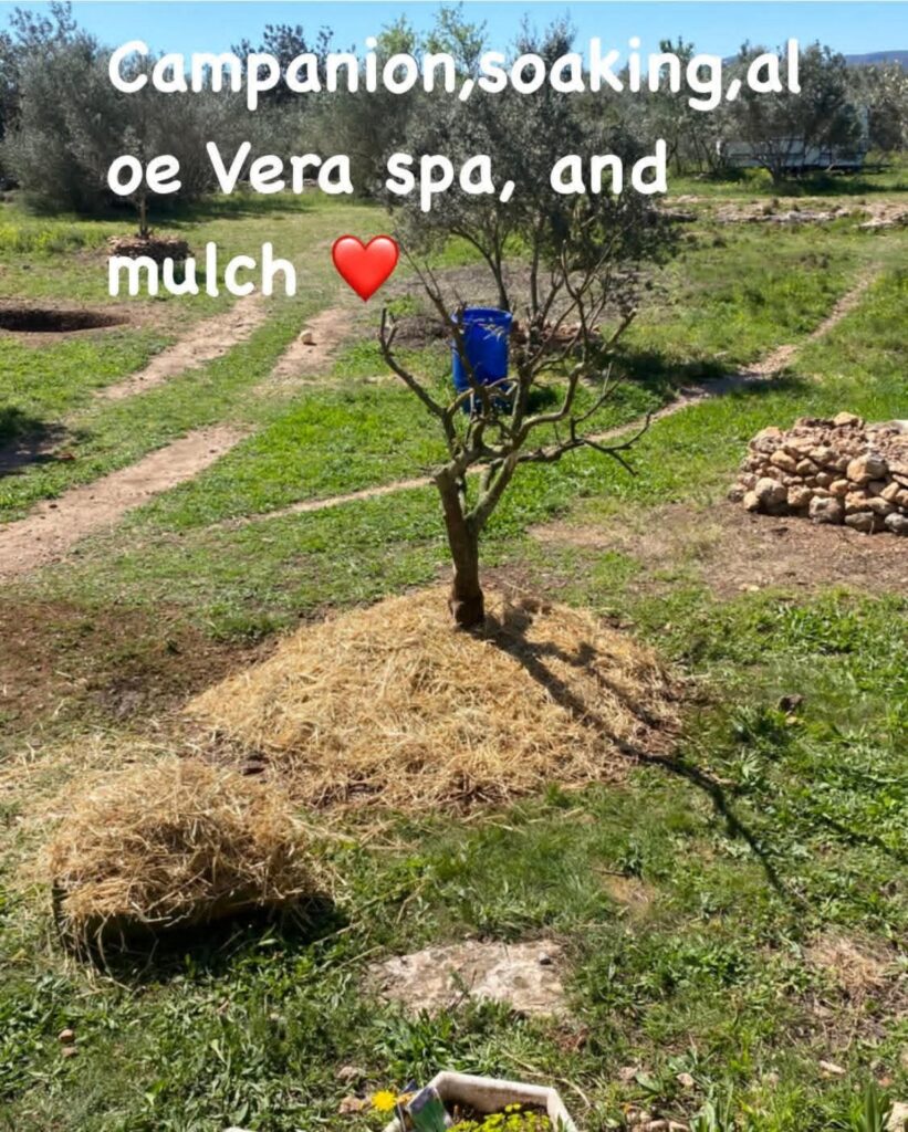 The next day, we planted the tree on a raised bed made from our own compost β built directly on top of the rocky ground.