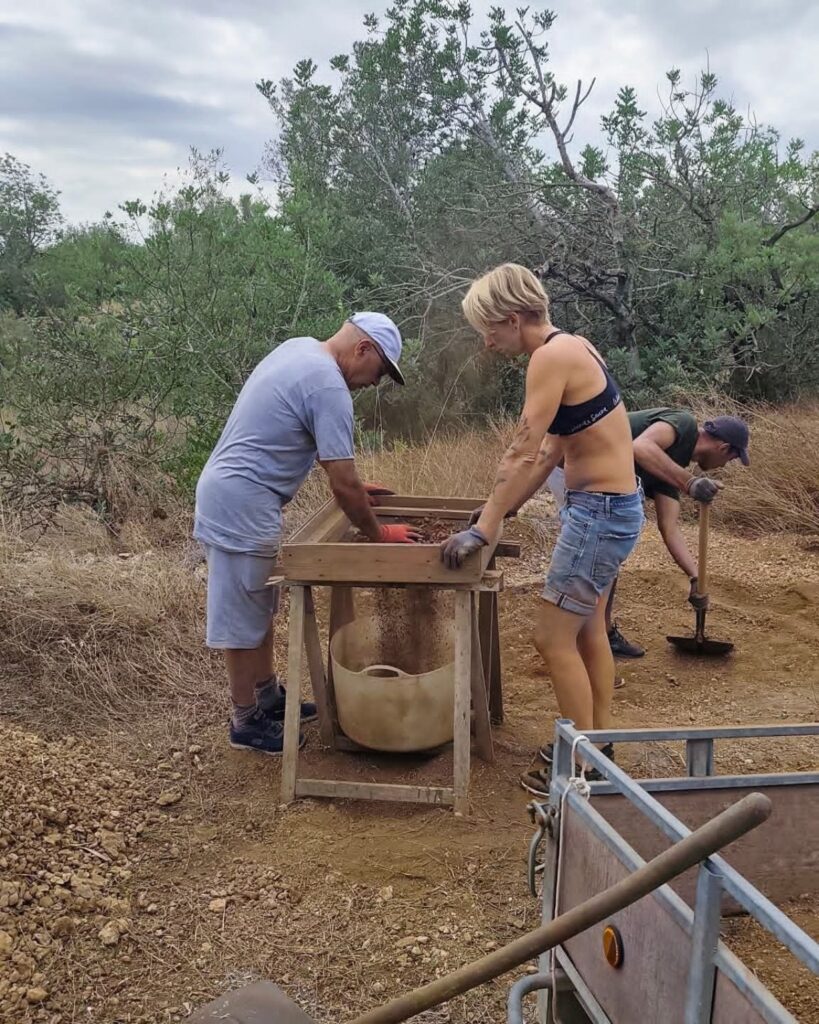 While precise measurements and wooden beams take shape, the rest of us are busy sifting soil like true treasure hunters ⛏️ —